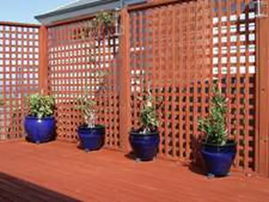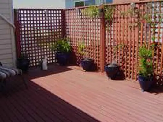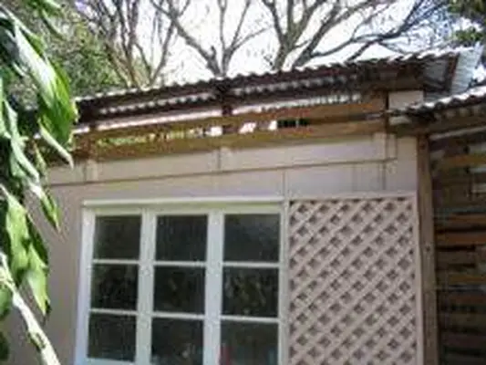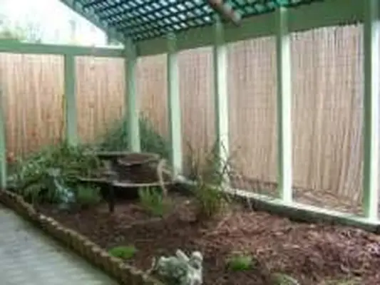 Di seguito è riportato il recinto che Jan ha costruito, che coinvolge la sua pergola. Avevo un falegname fare le colonne e posizionare il cablaggio. Jan sta dipingendo e paesaggistico.