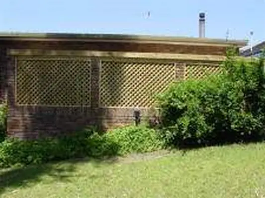 Sheila recently sent me the following photos of her cat enclosure along with a description. It measures 32×16 and the area under the house with the latticework is enclosed and has a concrete slab with electrical outlets and warm beds for the wilder ones in the winter. It measures 43×24. They also have an indoor room that is climate controlled. The more tame cats will come into this room. The litter tray consists of a 5×5 ft area filled with cypress mulch and about