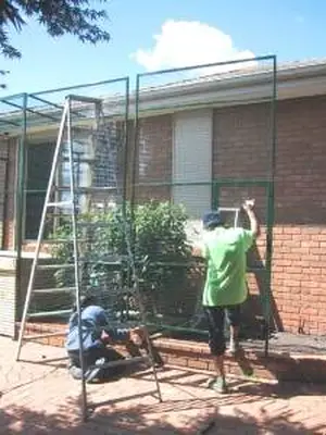 La figura seguente mostra come la rete è stata posizionata nella parte superiore della recinzione per impedire ai gatti di salire e fuggire. Ciò ha permesso a Marianna di dare ai suoi gatti l'accesso al giardino senza l'uso di un mobile per gatti. Tutti i lavori nel giardino, le aree ricreative e la casa dello stallone sono state realizzate da Marianna e suo marito.